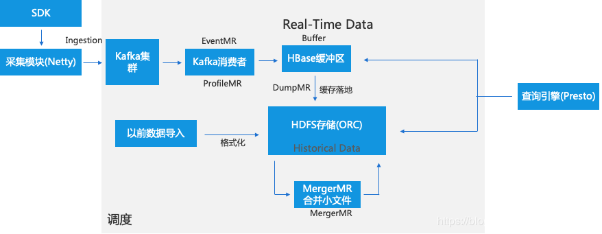 • 小文件问题:不按事件分区、MergerMR定时合并小文件