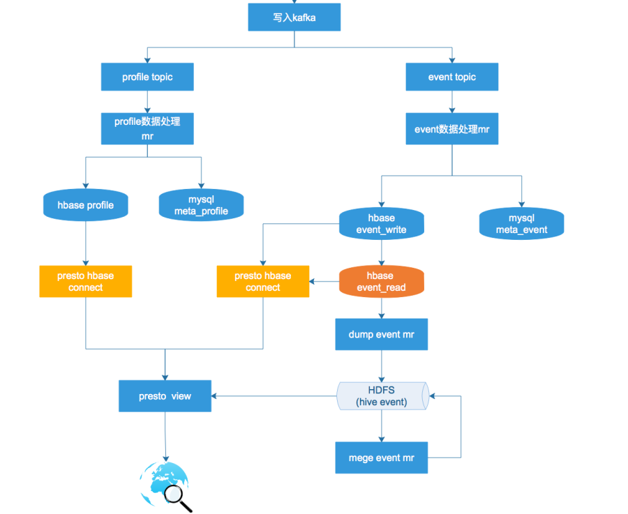 因为需支持从历史到最近一条数据的即时查询,查询引擎需要同时查HBase缓冲区里和历史存储区的数据,采用View视图的方式进行查询。