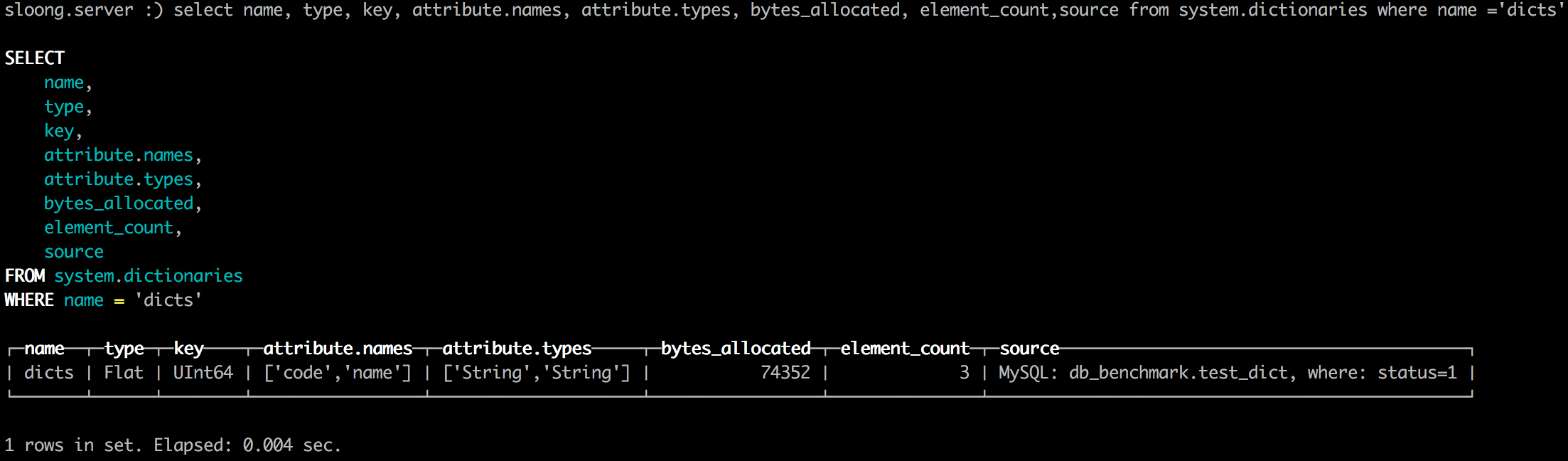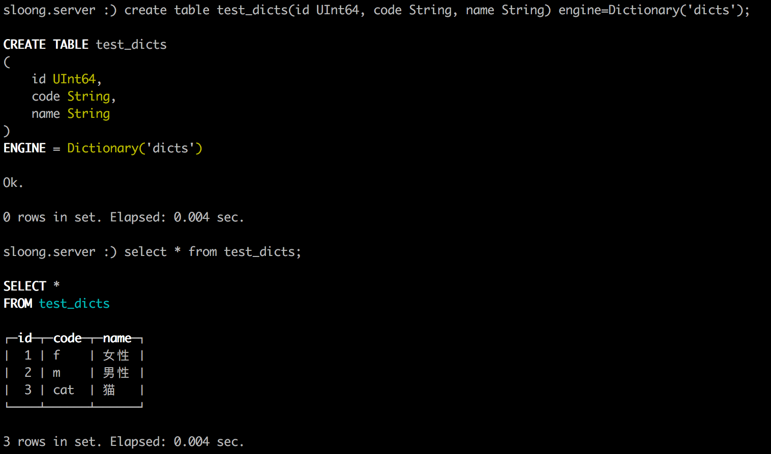 create table test_dicts(id UInt64,code String,name String) engine=Dictionary('dicts');