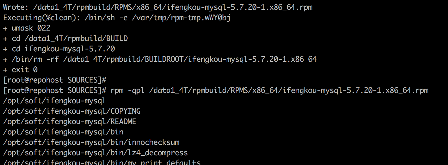 ~/rpmbuild/RPMS/x86_64/ifengkou_mysql-5.7.20-18.x86_64.rpm