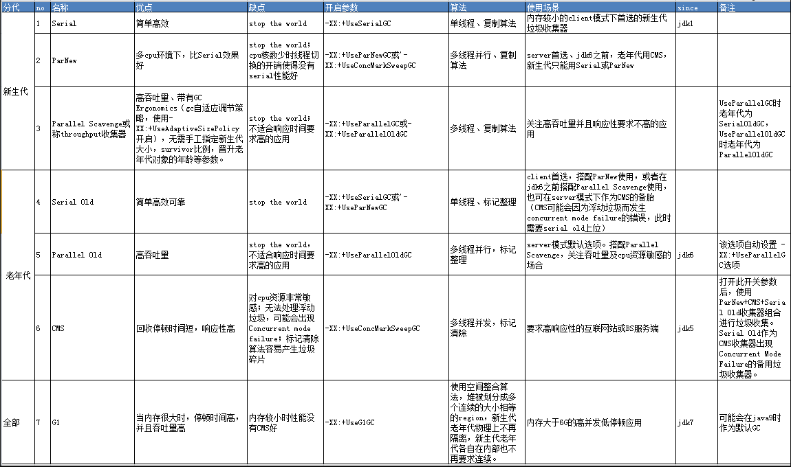 java的gc回收的类型主要有几种 UseSerialGC,UseConcMarkSweepGC,UseParNewGC,UseParallelGC,UseParallelOldGC,UseG1GC