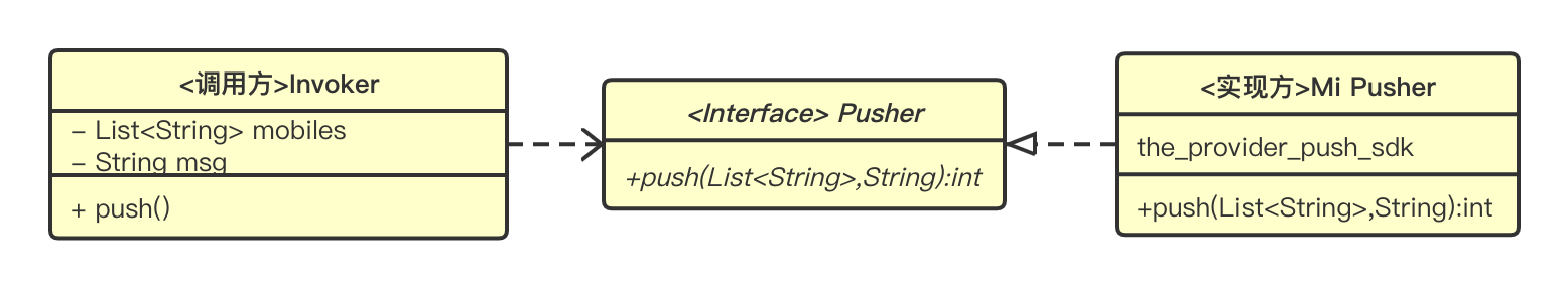 虽然我们没有显式使用Pusher的实现类XiaoMiPusher/JiGuangPusher,但是ServiceLoader帮我们自动加载了实现类。在实现类切换时,程序并不需要做改动,只需要将实现类放置到指定位置,java spi机制就会自动加载实现类执行具体的实现方法