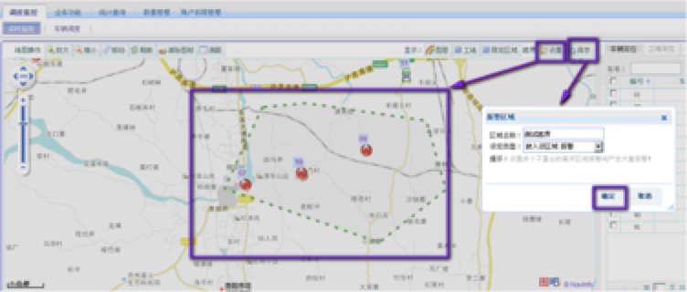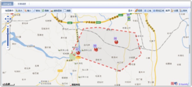 以中联搅拌车调度系统的电子围栏功能为例(环卫车、餐厨垃圾回收车、泵车、干粉砂浆运输车、罐等等都有应用,只是年代久远找不到几个截图了…)。因为搅拌车的活动轨迹,一般处于以搅拌站为中心,周边50公里范围内。作用在于1)判断车辆是否离场; 2)车辆是否进入工地(同时可以统计在途时间); 3)车辆是否进入活动禁区(比如白天进x环,城市管理条例。。。); 4)车辆是否驶离活动范围